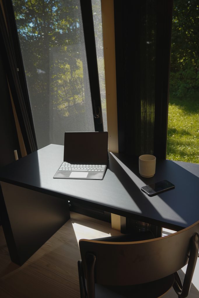 Waldaufenthalte reduzieren Stress und fördern Erholung. Die Naturkabine bietet Dir einen komfortablen Arbeitsplatz, Panoramafenster mit Blick ins Grüne, schnelles WLAN und ein kleines Soundsystem für Entspannungspausen. Ein verlassener Wald liegt direkt nebenan und gibt Dir die Möglichkeit, richtig abzuschalten. Die Natur hilft Dir dabei, neue Inspiration zu sammeln, Dich besser zu konzentrieren und kreativ zu denken.
